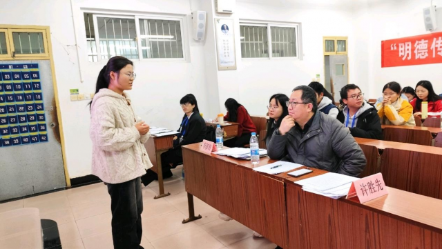 比赛过程中,两位老师耐心倾听选手说课,认真记录并评分。选手说课结束后,他们就选手们的优点加以赞扬,同时也对他们存在的不足进行指正并提出建议,让选手们受益匪浅。