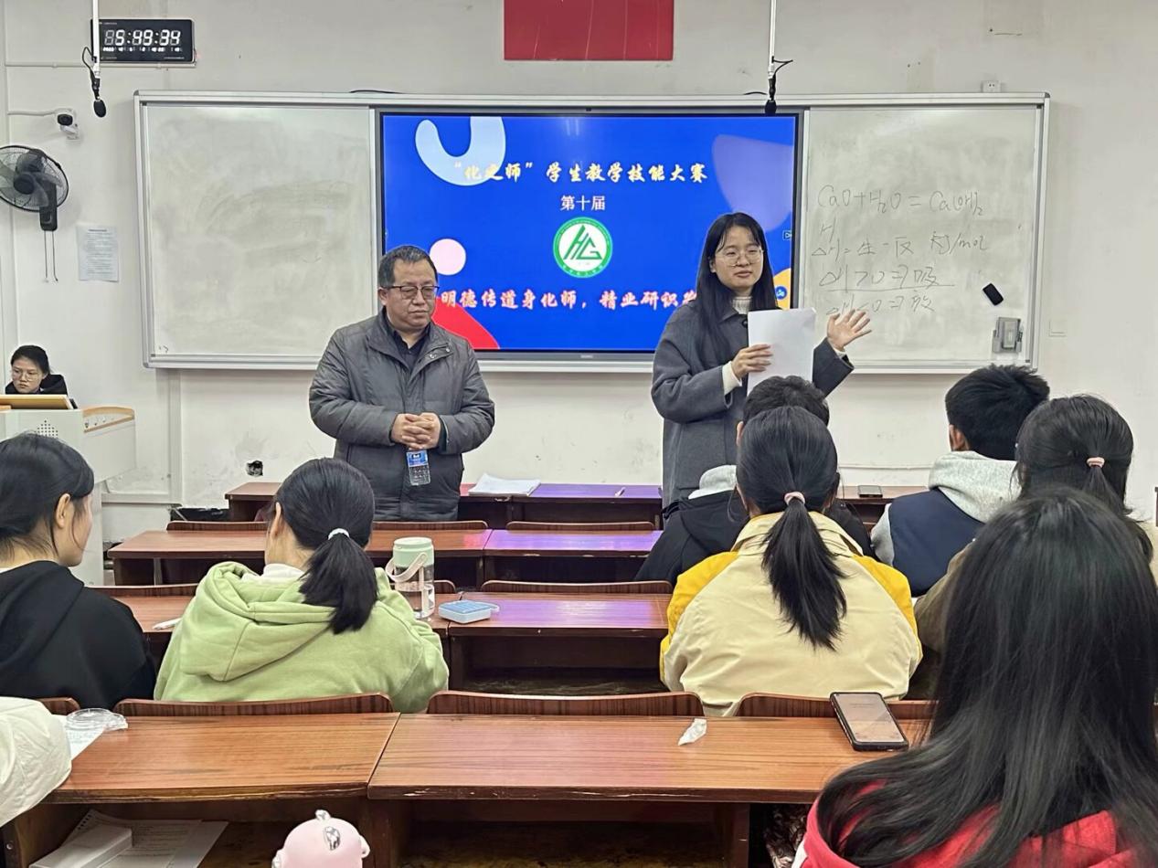 经评委审核,22级化学(一本-师范)1班刘小霞同学获得一等奖;21级化学(一本-师范)1班李佚琳和22级化学(一本-师范)1班余小晓两位同学获得二等奖;21级化学(一本-师范)2班卢晨曦、21级化学(一本-师范)2班林琳和22级化学(一本-师范)1班孙双双三位同学获得三等奖;21级应用化学(含职教师范 )2班李洋同学获得最佳说课奖。