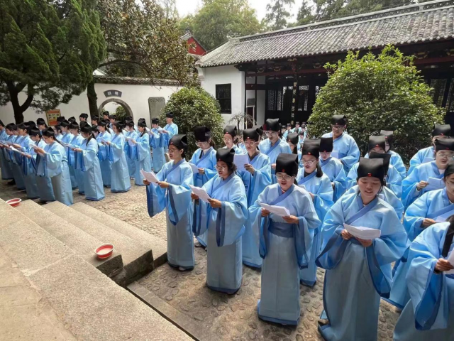 活动伊始,少数民族同学们有序参观白鹿洞书院,了解四大书院之首的悠久历史与浓厚底蕴。完成参观后,少数民族同学们穿上学士服,进行拜师礼,在感受到中华传统服饰的魅力的同时,同学们进一步感受到尊师重道、薪火相传的传统气息。