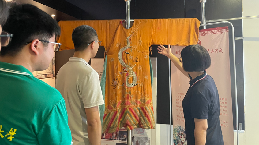 在展播厅,非遗传承人熊金海老师和西河戏演员余秋红老师带来《坐宫》中的杨四郎与铁镜公主的对唱,为实践队员带来一场戏曲盛宴。