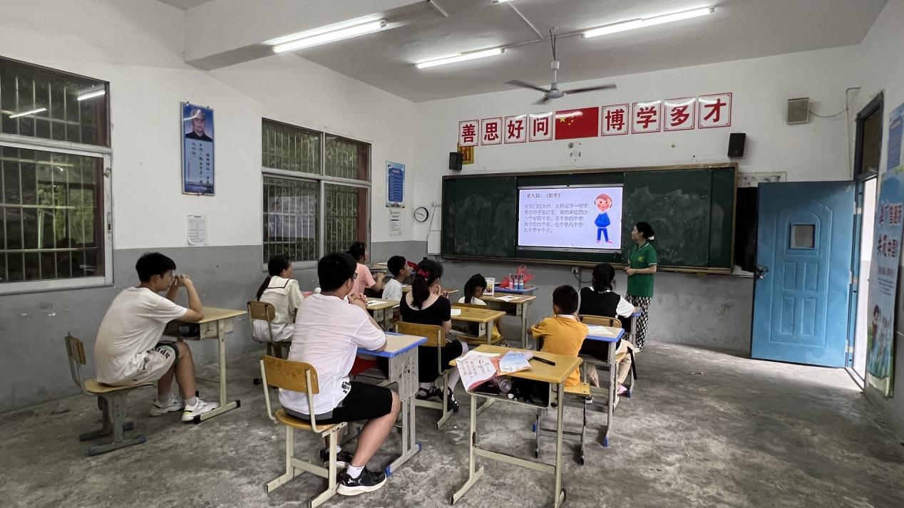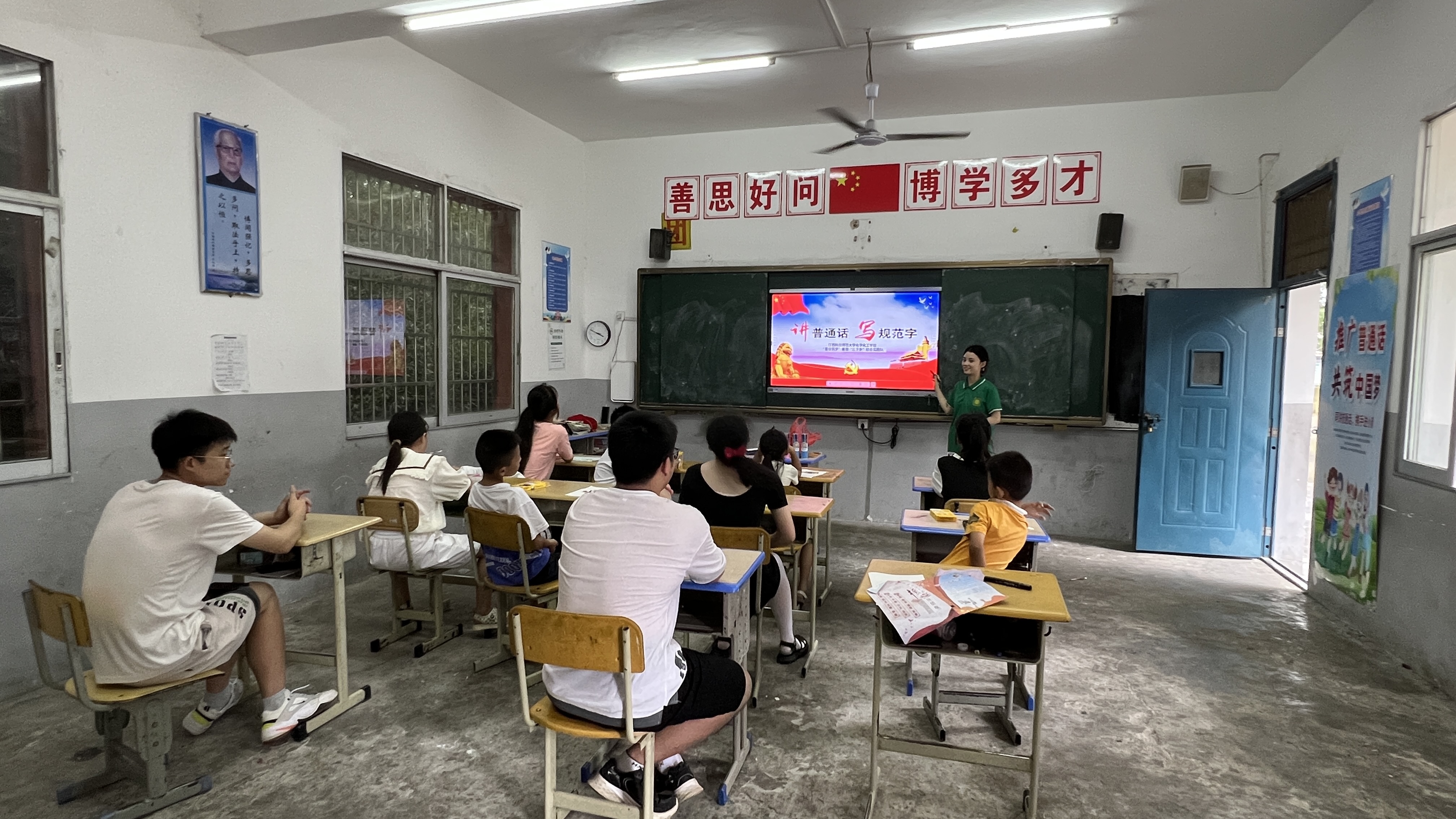 当天下午,实践队员在彭山村小学开展推广普通话活动,与中小学生交流了学习普通话的意义及重要性。实践队员以普通话绕口令和朗诵训练等形式展开推普活动,让孩子们体验了普通话的音韵之美。
