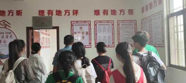 随后,实践队员们在汉岭社区郭书记的带领下,来到汉岭社区新时代文明实践站参观,真切的感受到社区为了当地居民的美好生活办实事、办好事的决心。为了保证政务公开,居民们“理有地方评,难有地方帮,事有地方管”,汉岭社区组建了居民理事会,制定了一套合理公正的议事流程,举办“围庐夜话”恳谈会活动,真正了解百姓所需,解百姓之难;当地青壮年多外出务工,社区便建立了“颐养之家”,让家里老人们的一日三餐无忧;为了帮助年纪大不会使用手机的居民,社区贴心的设置了“亲情连线”,免费提供网络和设备,让老人与思念已久的孩子们视频通话;通过“四点半课堂”,各村的村干部给那些四点半放学父母还未下班无人照顾的孩子,进行各种文体艺类的辅导;文明实践中心还是居民们办红白喜事的场所,大家可以在这里聊天交流,尽情的欢唱当地特色西河戏……正是这一桩桩、一件件实事,让社区居民安居乐业,过上幸福美满的生活。