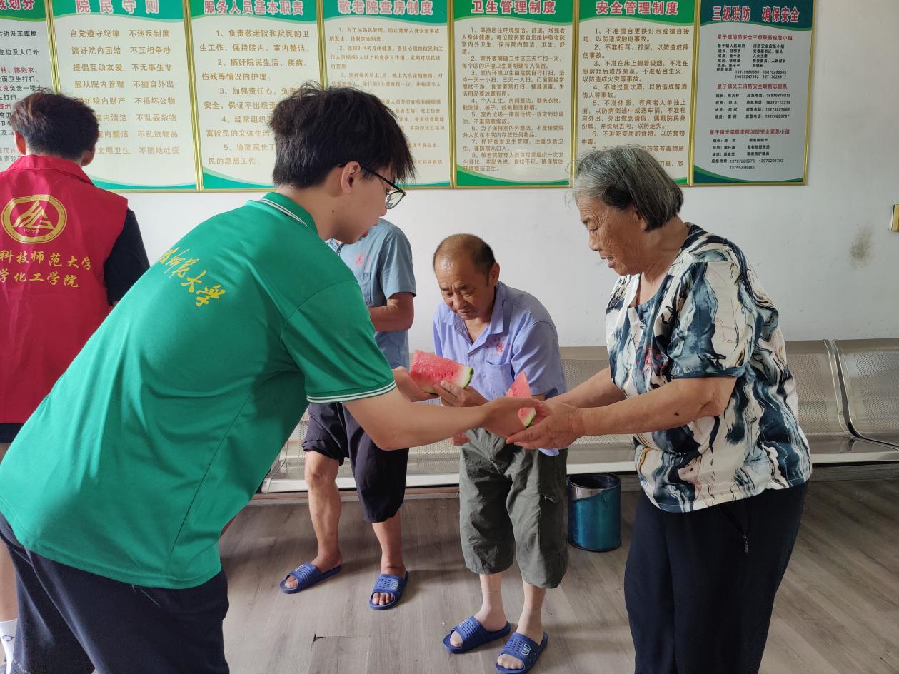 为弘扬中华民族敬老、爱老、助老的传统美德,培养当代大学生的社会实践能力和社会公德意识,推进新时代文明实践活动纵深开展,7月4日,江西科技师范大学必赢766net手机版“夏日筑梦”社会实践队来到了庐山市星子镇光荣敬老院,为敬老院的老人们带去心灵上的慰藉,让他们感受到青年的朝气和社会的温暖。