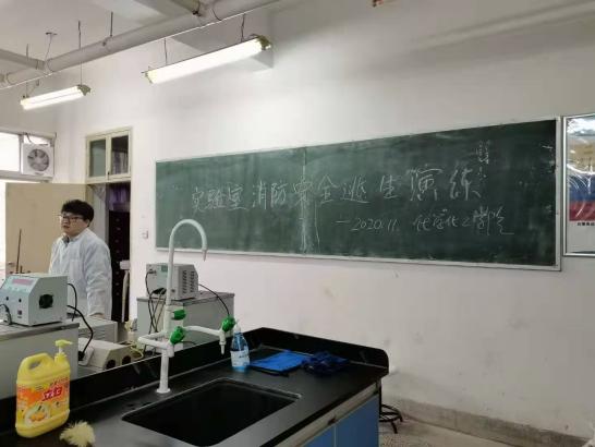 首先由林聪老师在化学楼204实验室现场讲解实验室安全知识,他从五个方面:水、火、试剂和废液安全,向在场学生讲述基本的操作安全。随后杨豫平老师向大家介绍实验仪器操作安全问题,并引导学生进行了一次实验室消防逃生模拟演练。最后由徐建国老师讲解灭火器的种类,使用范围和方法并让学生实际操作灭火器。