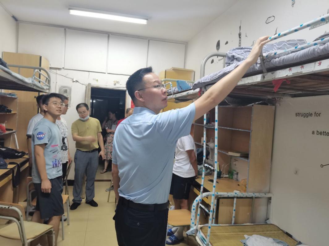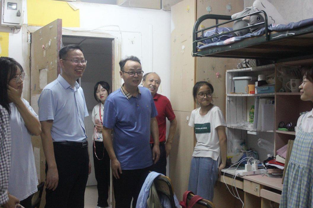 秋风送爽,又到一年开学季。为了使21级新同学更快地适应大学生活,9月12日晚上七点必赢766net手机版党委书记鲁辉、副书记蔡文强、学工办谢巧燕、苏婧、许乐群及新生班主任们来到新生寝室走访并看望2021级新生。