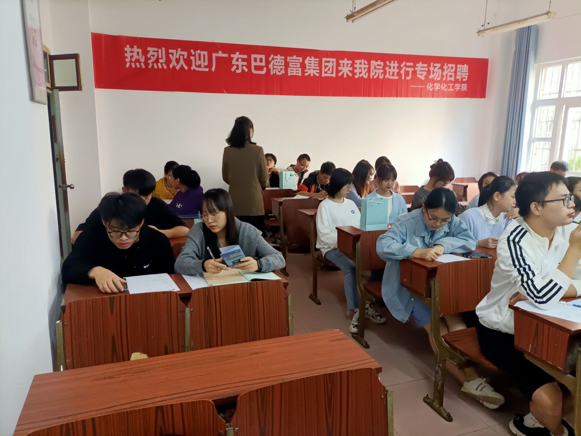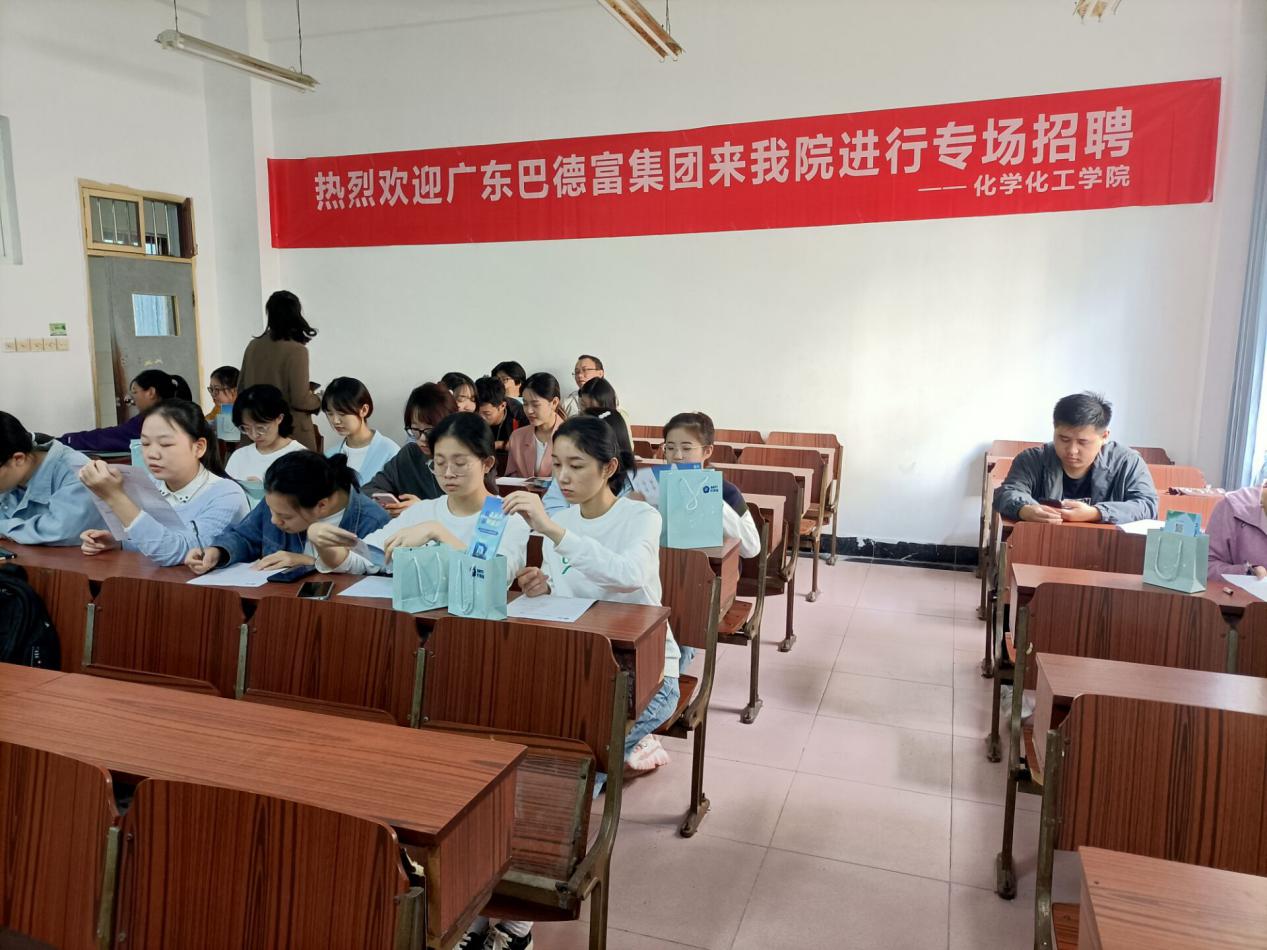 为更好拓宽我院毕业生就业渠道,10月11日下午2点半,必赢766net手机版特携手广东巴德富集团,在9栋9110教室召开专场招聘会,我院部分毕业生积极参与招聘会。