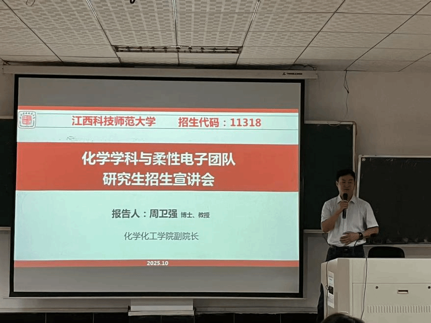 宣讲会上,高飞副院长首先系统介绍了学院的发展概况、导师队伍规模及2026年硕士生招生政策。他指出,化学学科是学校博士点建设学科,拥有一级硕士学位授权点,涵盖多个优势研究方向,且ESI排名持续保持全球前1%。学院科研平台条件完善,并设有丰富的奖助学金体系,能为研究生科研与学习提供有力保障。