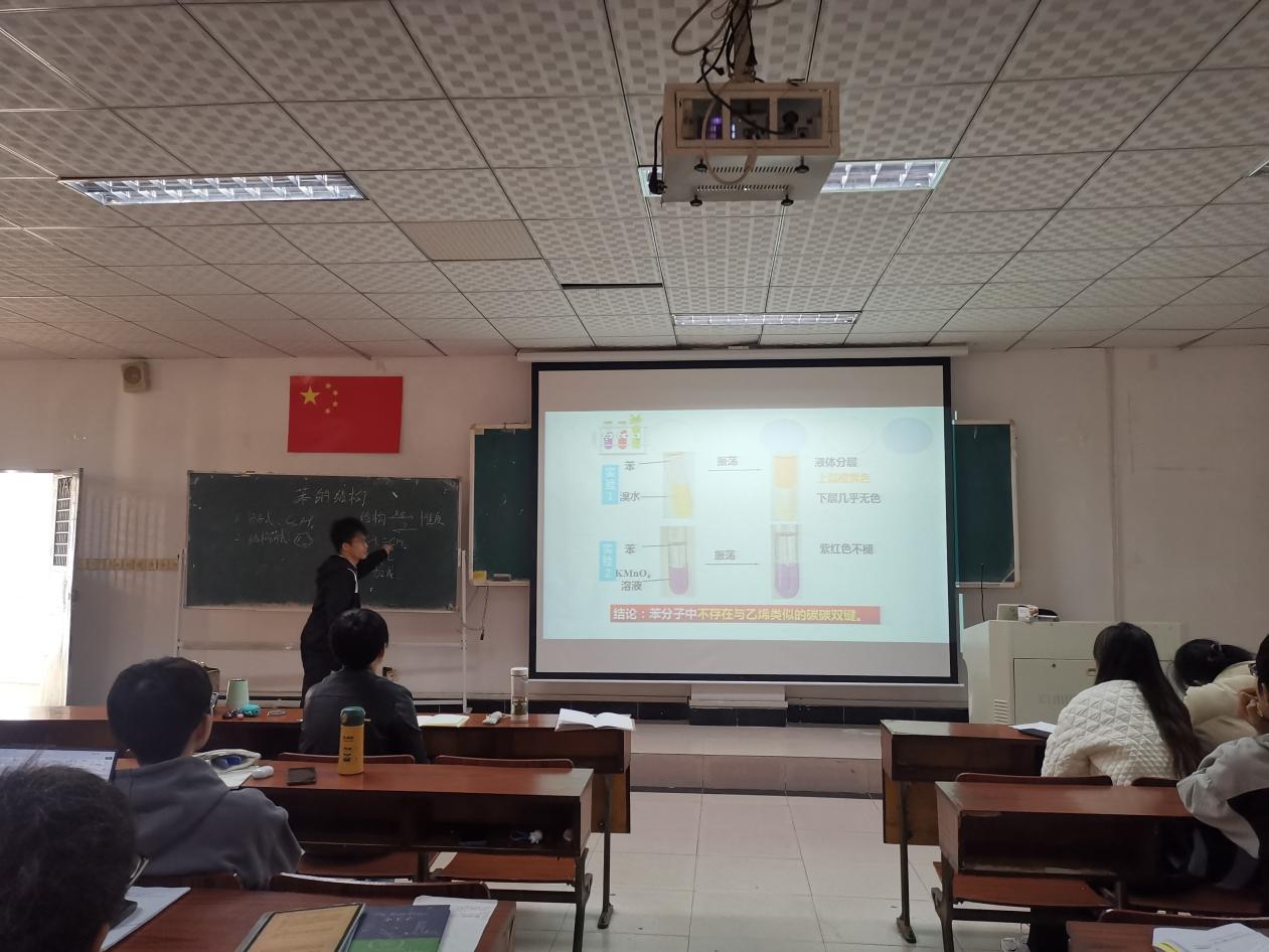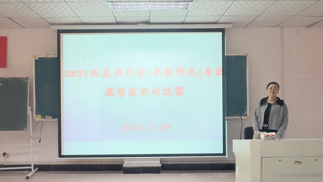 为加强学生教学技能训练,不断提高师范生的教学基本技能和教研能力,促进大学生教育理论与实践的有机结合,11月29日下午,必赢766net手机版在9211教室举办了2021级应用化学(职教师范)专业教学技能对抗赛暨教学研习活动。本次活动由应用化学专业刘秀红系主任、孔芳芳老师、王静岚老师、江西省医药学校高倩老师(学院兼职实习指导教师)和应用化学专业应届毕业生刘乐同学共同担任评委,2020级应用化学和2021级应用化学专业同学到场观摩比赛、参与教研。