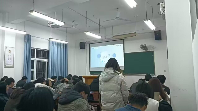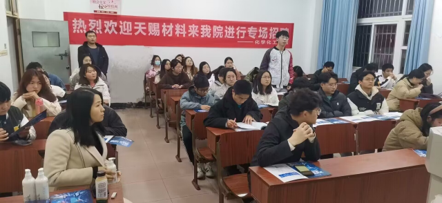 招聘会上,天赐材料负责人分别就企业概况、核心业务、发展历程、研发团队、全球客户、薪资福利待遇、招聘岗位和流程等内容进行了详细的介绍。同学们认真聆听,并纷纷就自己所关心的选拔要求、专业竞争压力、工作调动、工作内容、培训时长、薪资福利等问题与公司负责人进行了交流探讨。企业招聘人员不仅细心地为学生们答疑解惑,还给在场学生提出了诸多专业的建议。